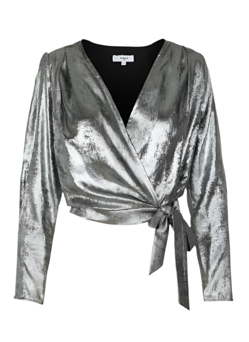 • Metallic wrap blouse