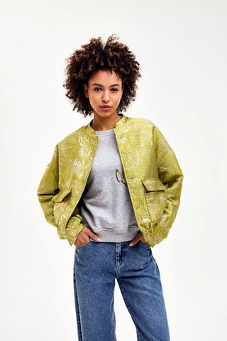 Deze groengele top is een echte blikvanger! ✨ De prachtige bloemenjacquard met zilveren details geeft een luxe touch. Draag het over een basic outfit voor een instant fashion upgrade! 💛🌿