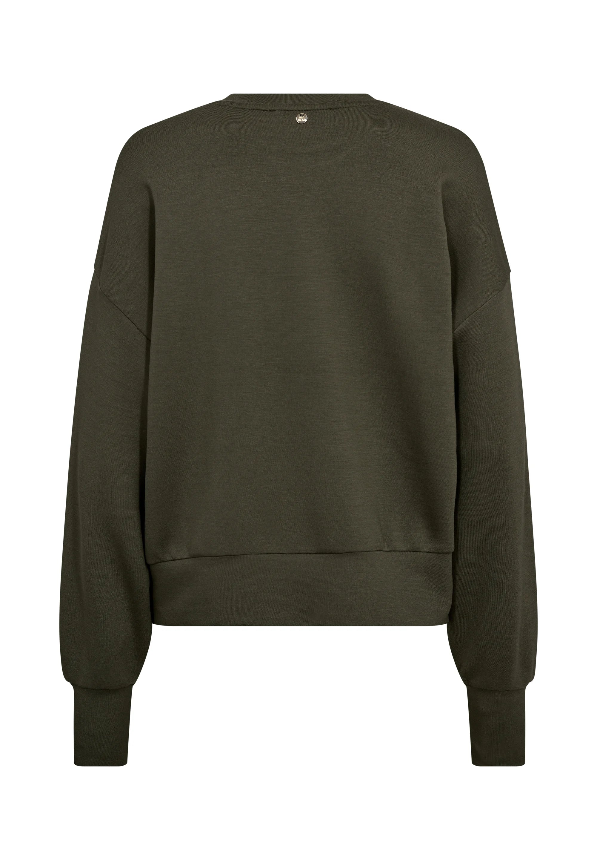 De MMCelli O-LS Sweatshirt van Mos Mosh is de perfecte mix van comfort en stijl. Dit zachte sweatshirt in de kleur Olive Night heeft een relaxte pasvorm en is gemaakt van een hoogwaardige katoenmix die heerlijk aanvoelt op de huid.