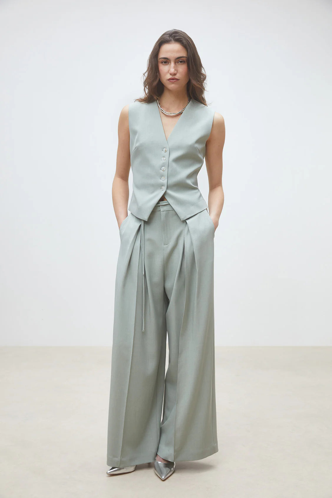 De Dylan gilet van Suncoo in de frisse tint Vert d’Eau is een stijlvol en vrouwelijk statement piece met een moderne twist. De zachte groengrijze kleur geeft het gilet een elegante, zomerse uitstraling en maakt het perfect voor zowel chique als casual looks.
