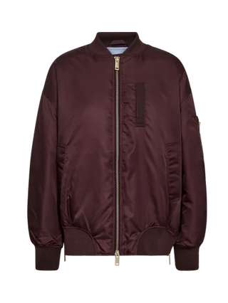 Super leuke bomber jas van Mos Mosh, in de kleur burgundy. Oversized fit. Leuke rits details